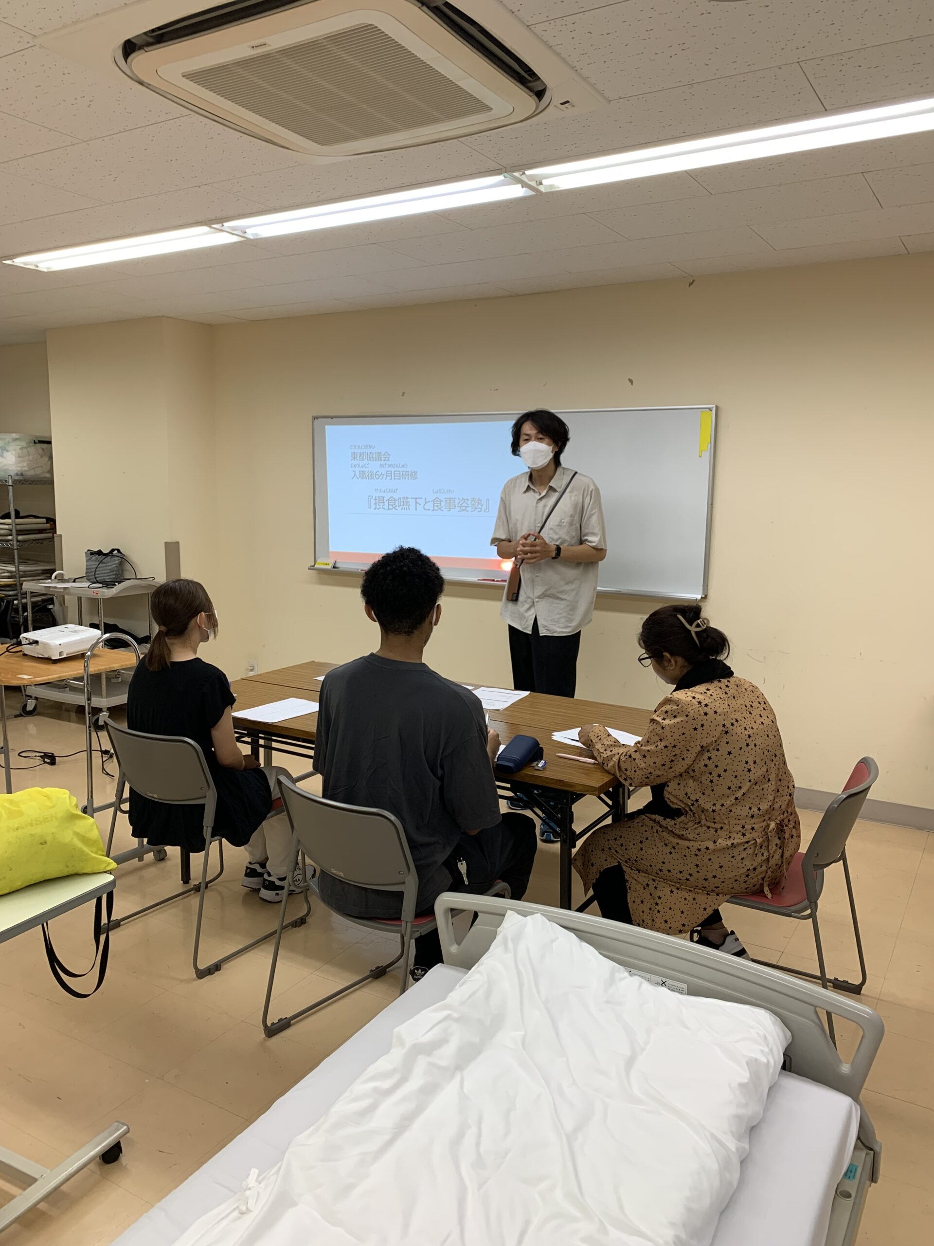 9月4日、千住介護福祉専門学校で協議会新入介護職員6カ月研修を実施し、3人の介護職員が参加しました。