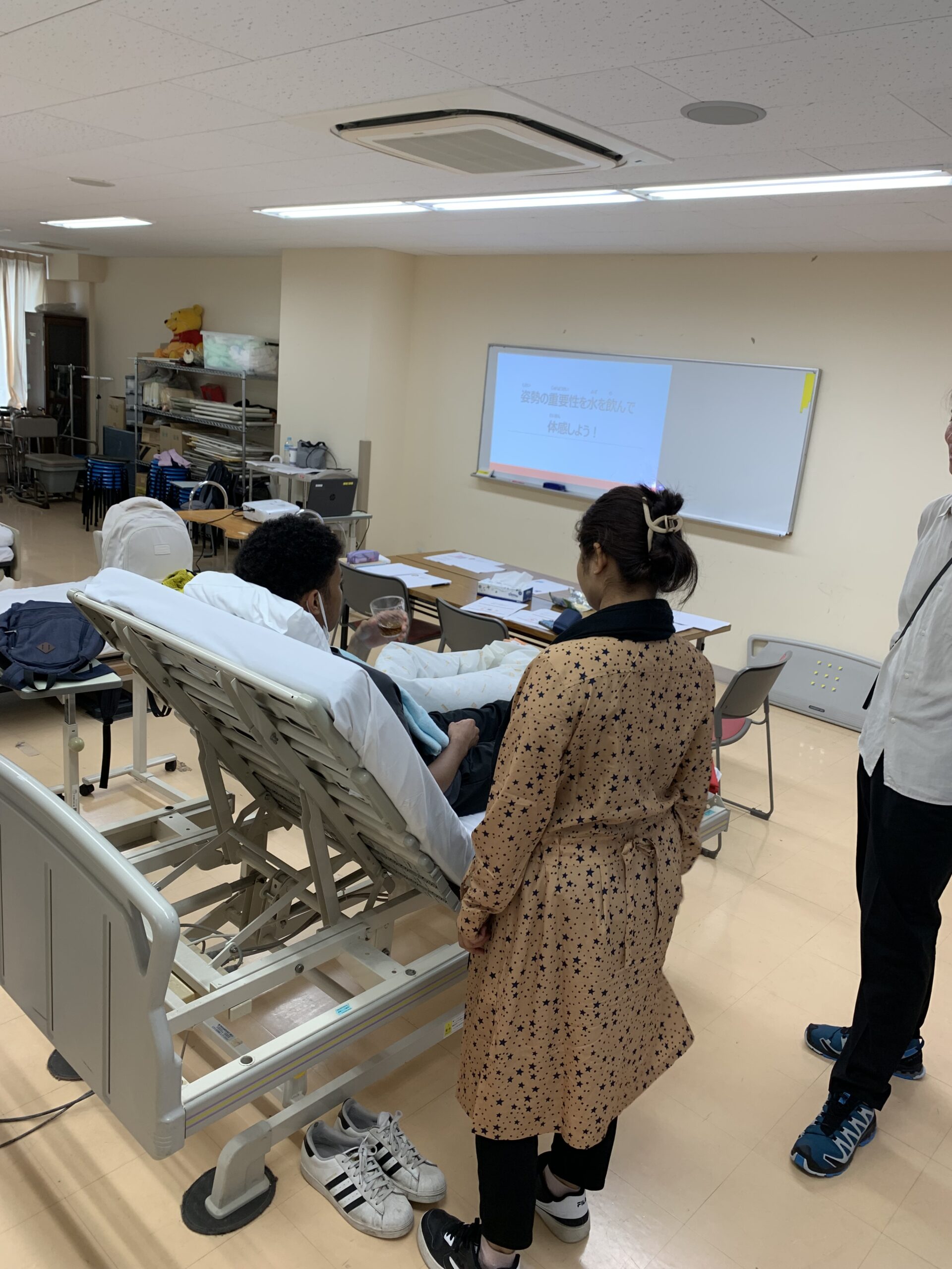 講義では、「摂食嚥下と食事姿勢」について学習し、実際にベッド上での嚥下について体験をしました。