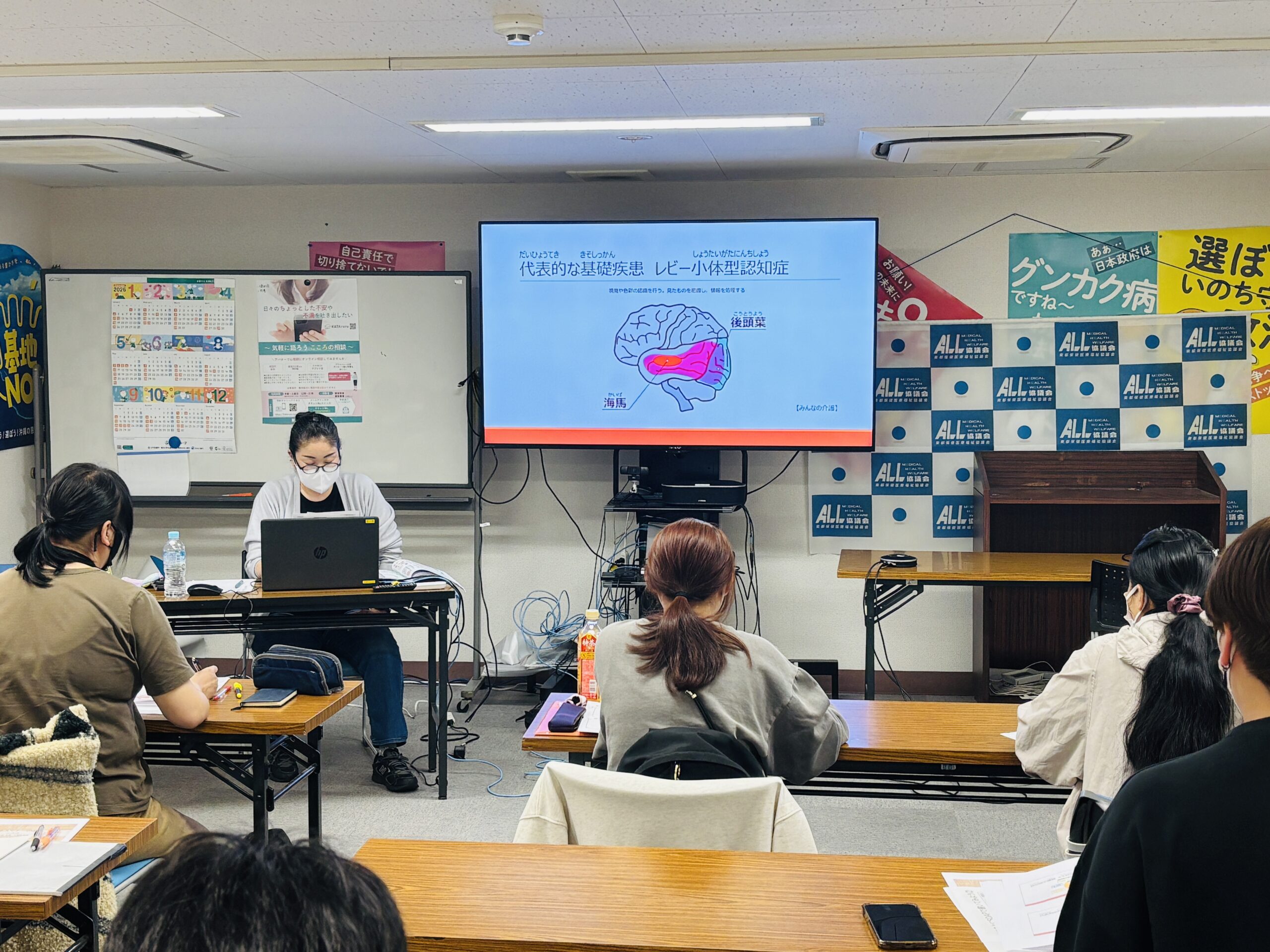 認知症の症状や種類だけでなく、ご本人の気持ちに寄り添う視点や、関わり方の工夫についても丁寧な解説があり、参加者は熱心にメモを取っていました。