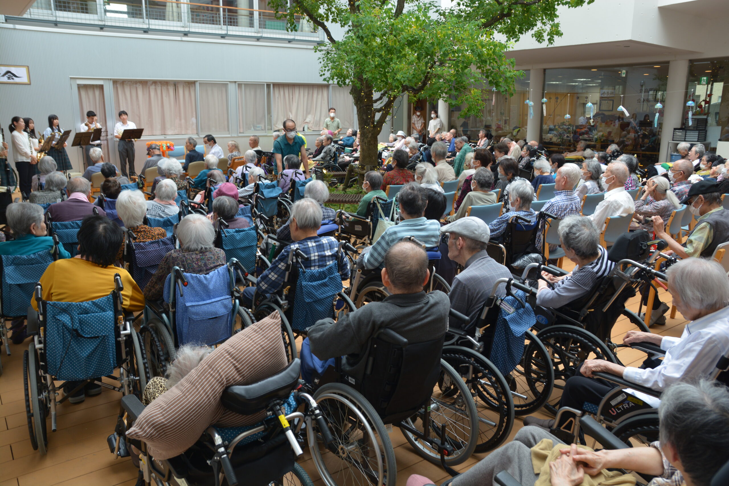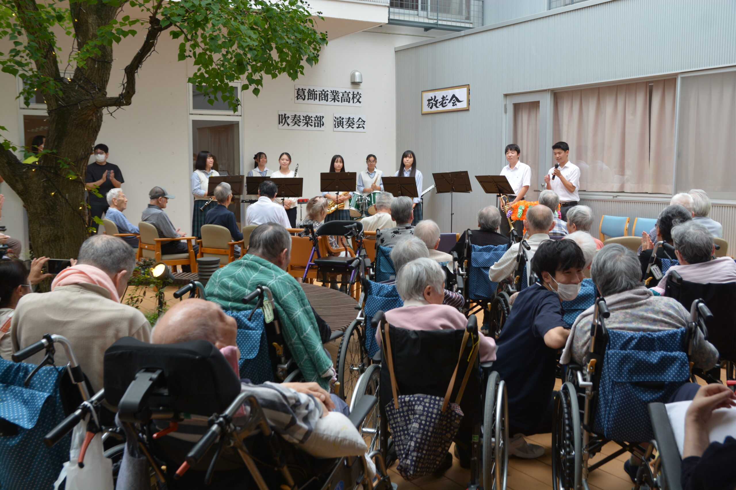 今年の敬老の集いには、近隣の葛飾商業高校の吹奏楽部の生徒さんが演奏に来てくださいました。
