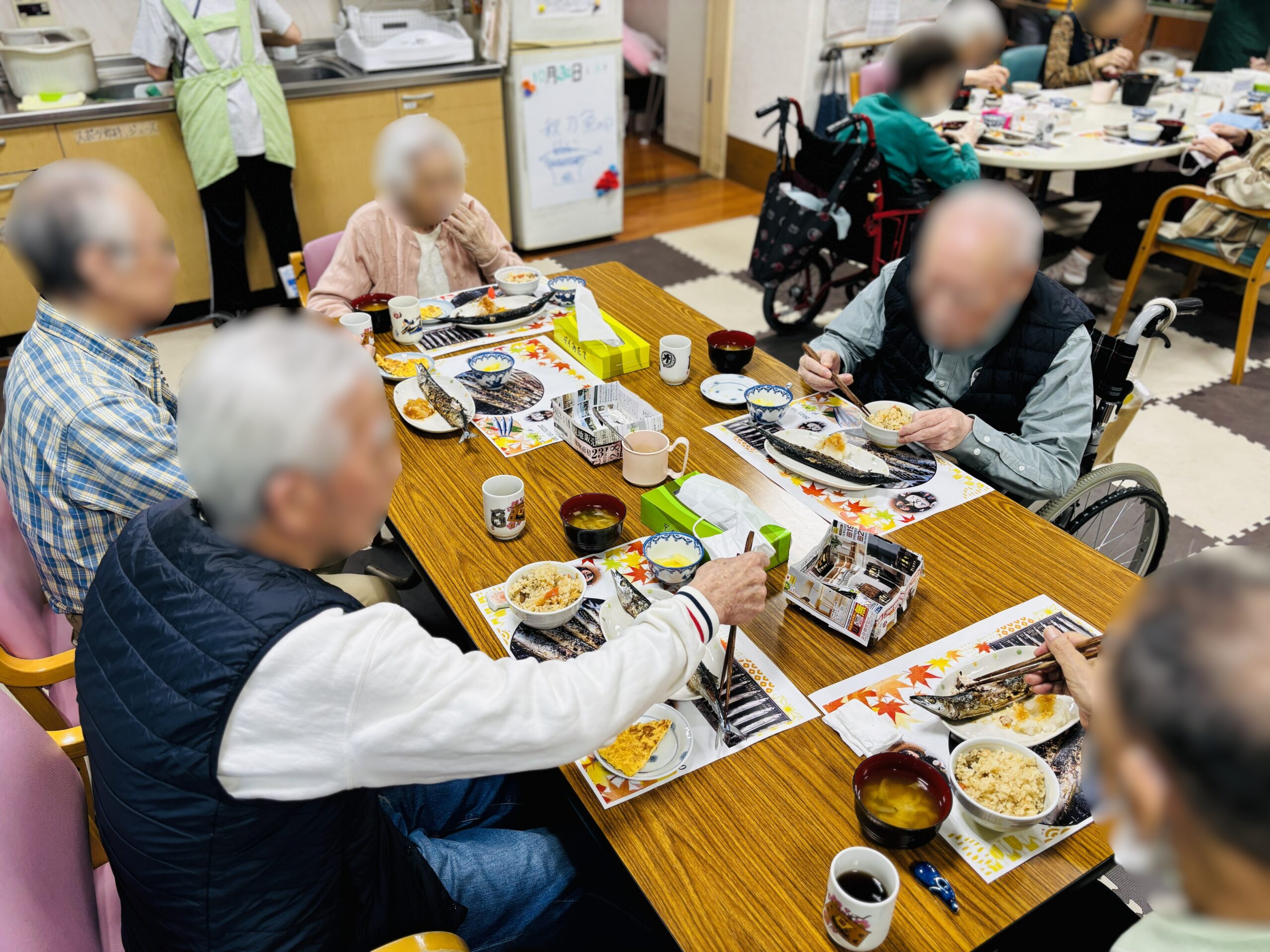 そして心を込めて焼いたさんまを、利用者様はにこやかに召し上がっていました。