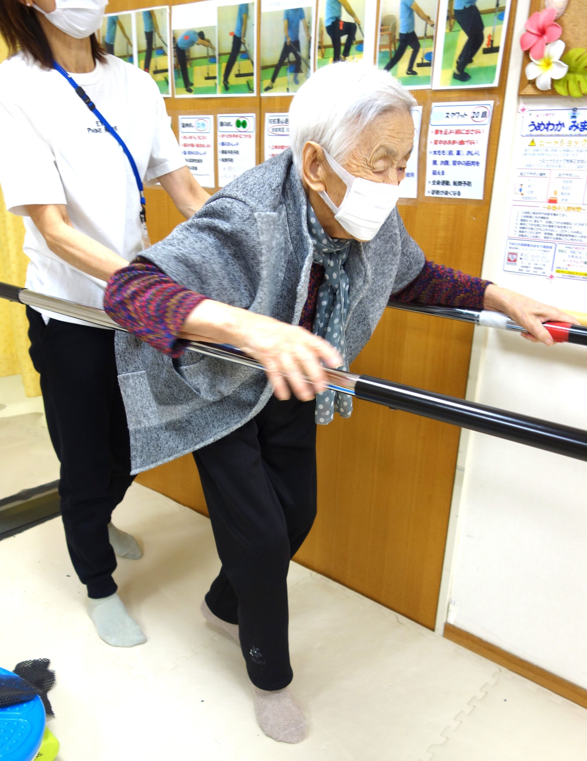新年も寒さはどこへやら熱く『動きやすい身体作り』に取り組まれる利用者の皆様のご様子です。