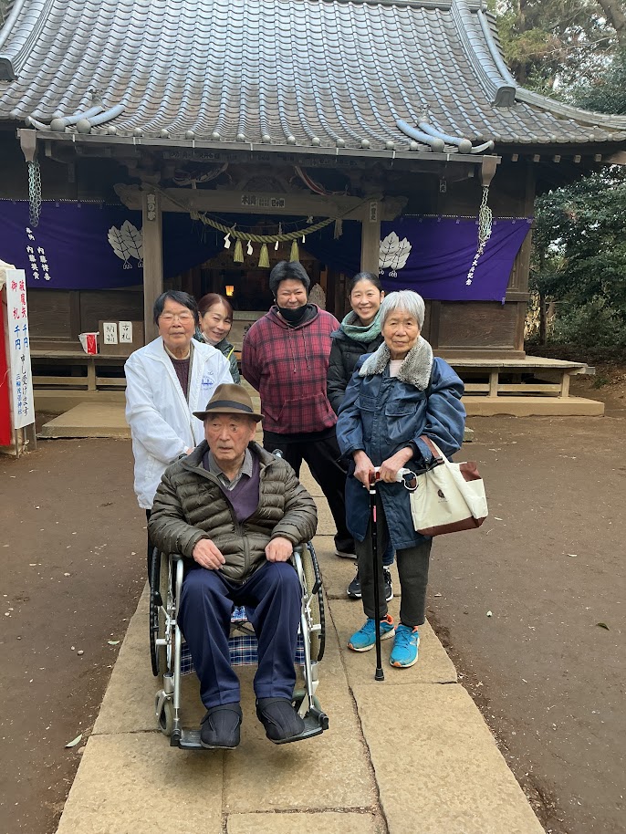 手をつないで歩く利用者様に後光が差してさらに神聖な感じの写真が撮れました(スゴ~イデスネ!)