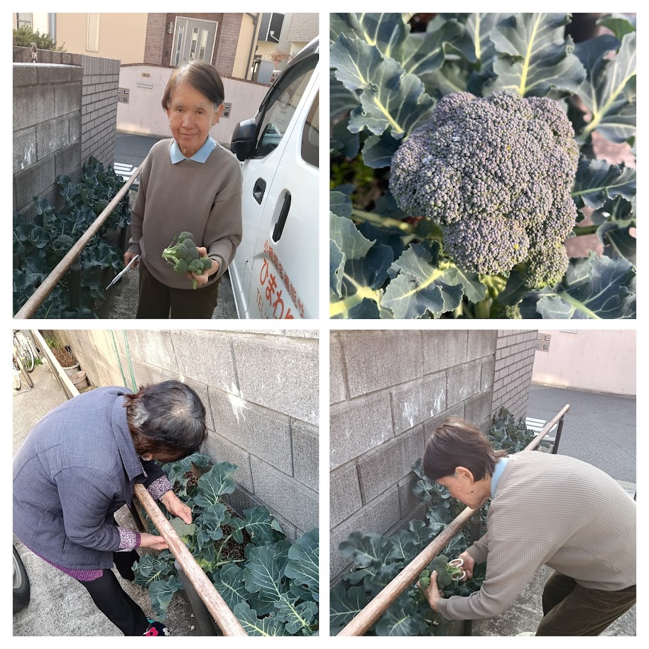 それから、ひまわりの家の駐車場脇にある小さい小さい農園で、大きな大きなブロッコリー収穫出来ました!!