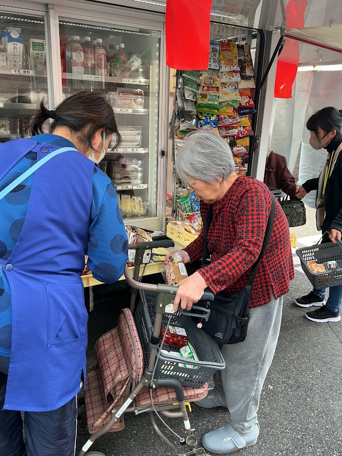 今年からひまわりの家の前に移動スーパーが来てもらえるようになり、普段買物に出かけられない利用者様達も毎週喜んでお買い物されています!
