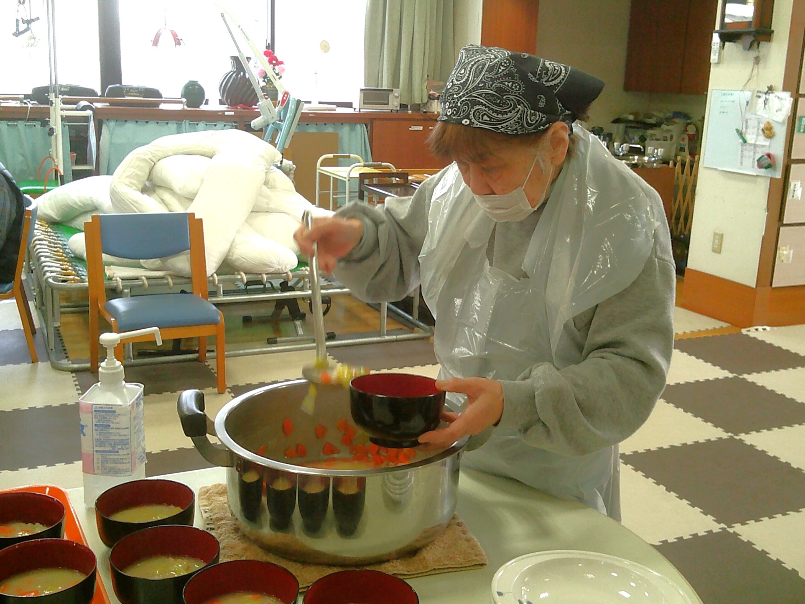 とても優しい味のクリームシチューにみんな大満足の昼食でした。