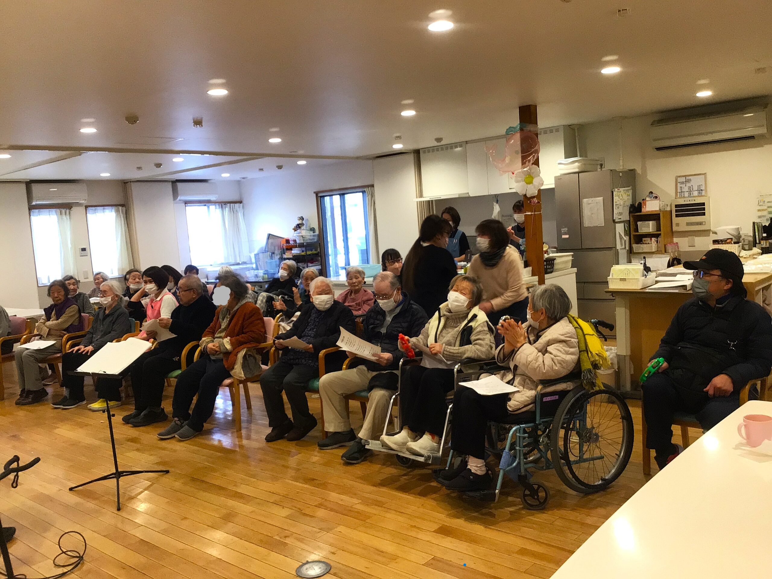 利用者様の家族や、同じ建物の訪問介護の職員、事務局職員、近くのデイサービスセンターなごみの利用者様も一緒に参加して楽しく盛り上がりました。