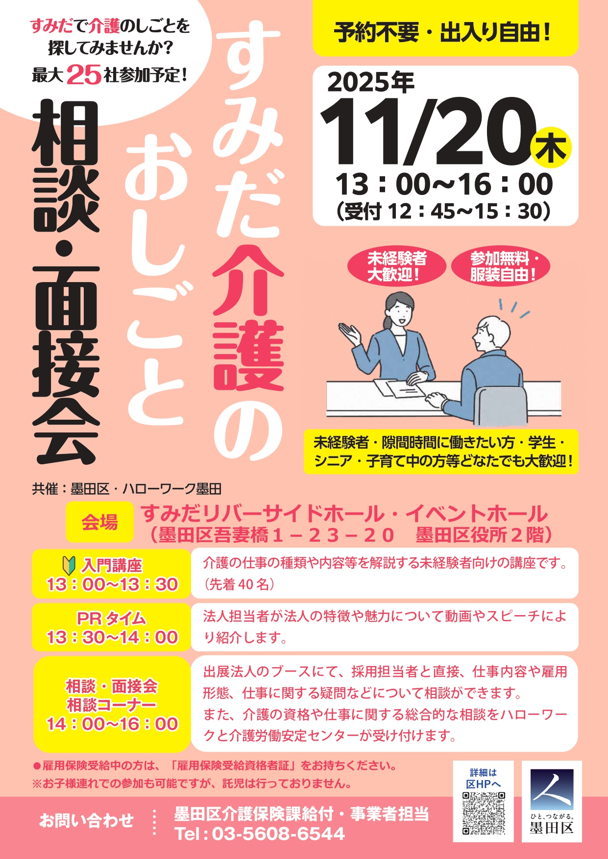 当法人は11/20(木)「すみだ介護のおしごと相談・面接会」に参加いたします。
